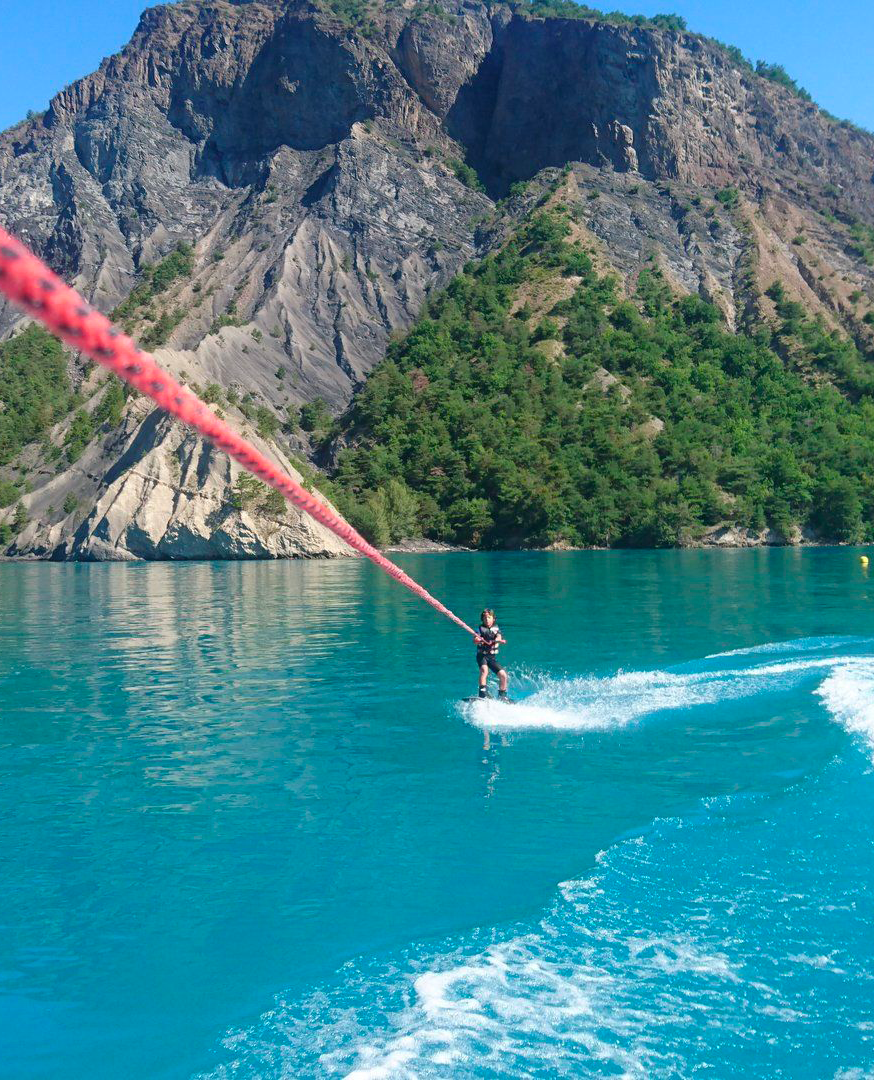 Pour votre séance vous pouvez inviter un ou deux amis à monter dans le bateau pour profiter de la promenade et faire quelques photos ou vidéos. Le lac de Serre-ponçon est le lieu idéal pour pratiquer ce sport de glisse.